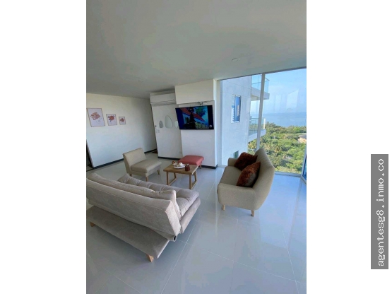 Hermoso apartamento amoblado de 120 ms. Cuenta con 3 habitaciones, la principal con baño privado y las otras 2 habitaciones comparten 1 baño . Sala comedor integrados con balcón que brinda una preciosa vista. Cocina abierta completamente dotada.